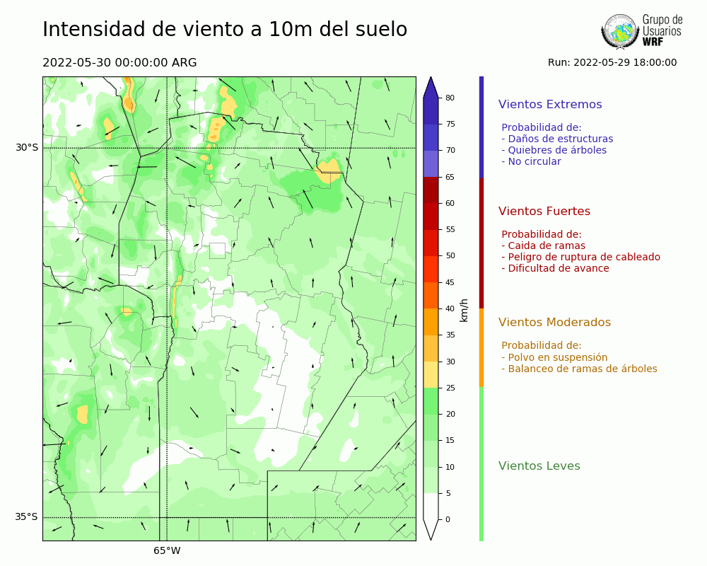 • Intensidad máxima: 10.39 km/h (30/05/2022 11hs.)