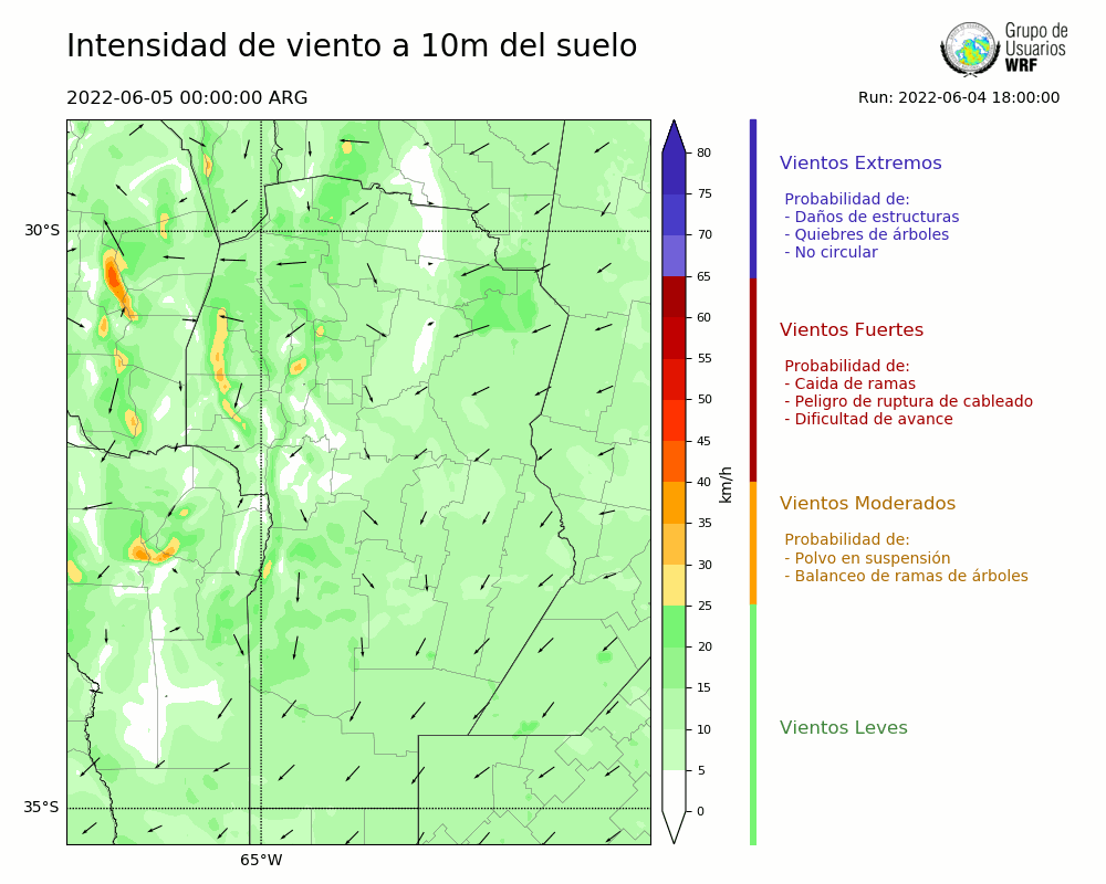• Intensidad máxima: 22.92 km/h (05/06/2022 04hs.)