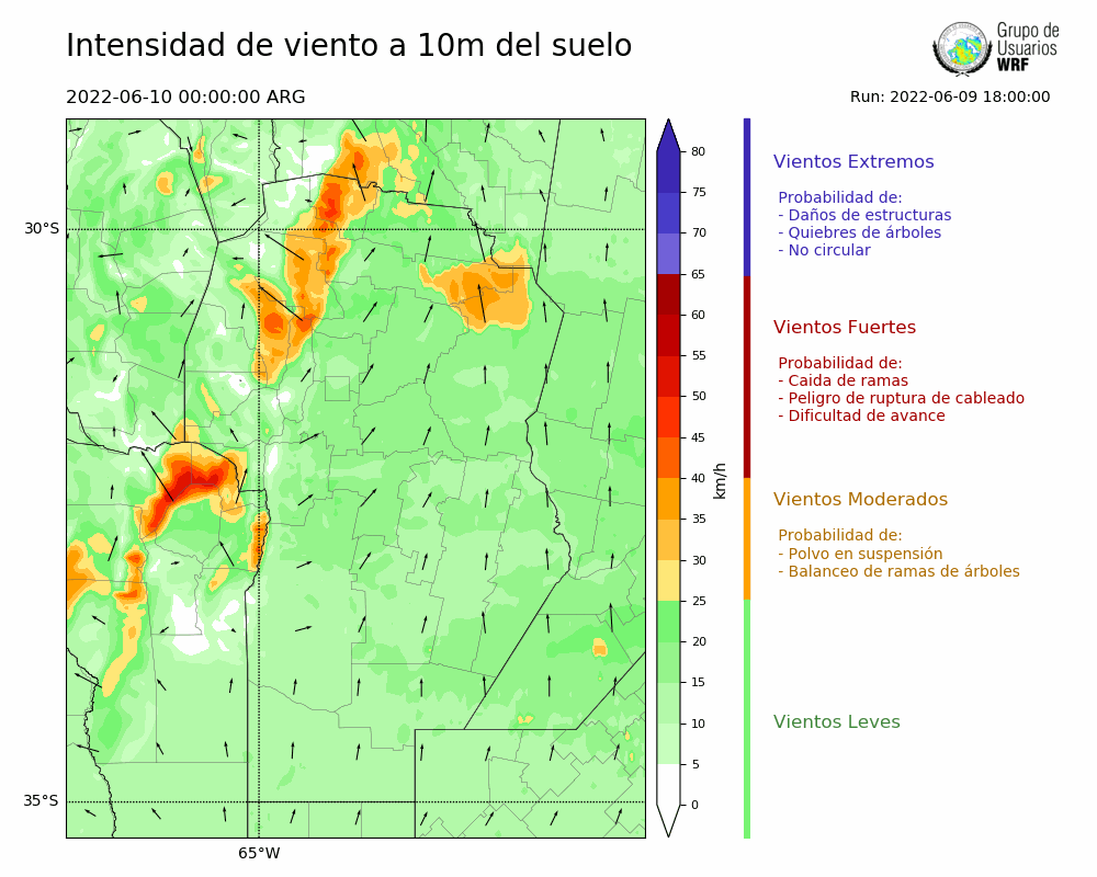 • Intensidad máxima: 16.86 km/h (10/06/2022 00hs.)