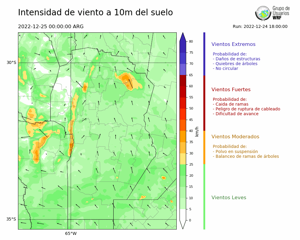 • Intensidad máxima: 19.21 km/h (25/12/2022 04hs.)