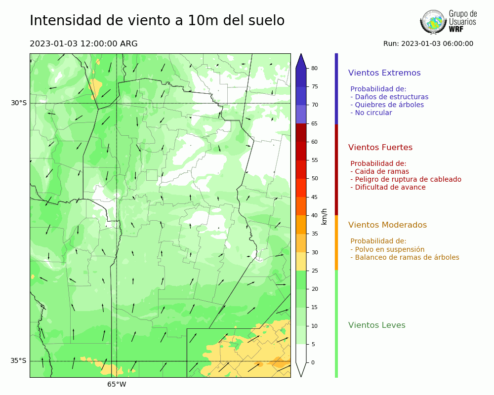 • Intensidad máxima: 15.55 km/h (05/01/2023 07hs.)