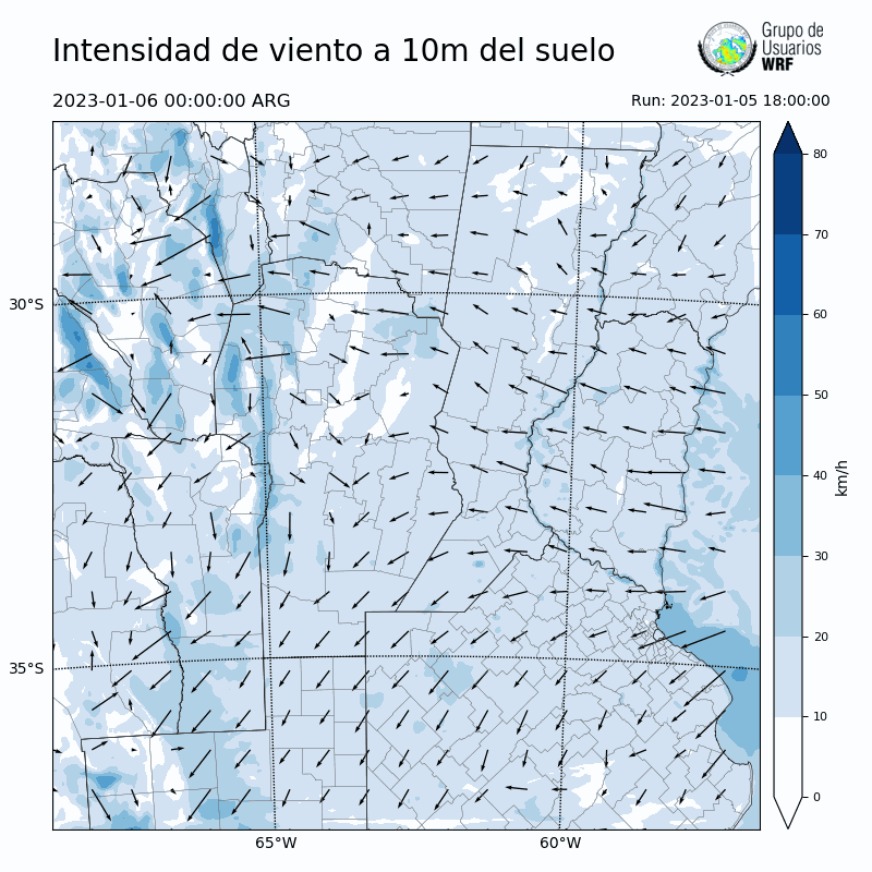 • Intensidad máxima: 10.69 km/h (08/01/2023 07hs.)