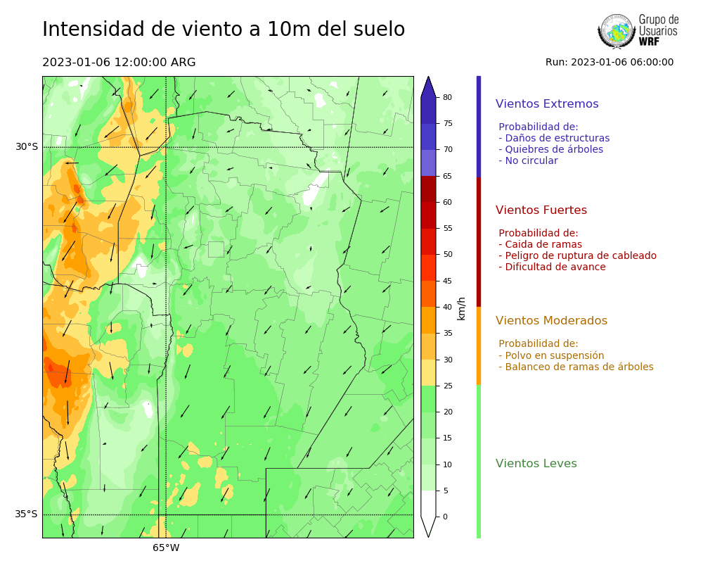 • Intensidad máxima: 25.56 km/h (06/01/2023 18hs.)