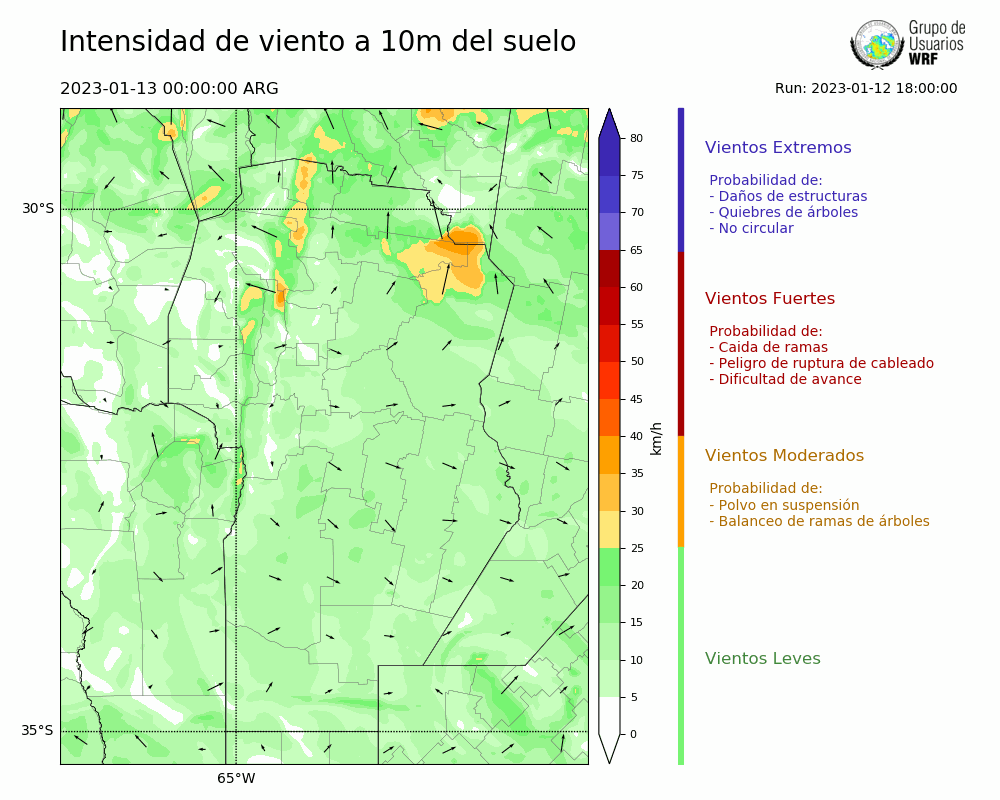 • Intensidad máxima: 18.96 km/h (13/01/2023 08hs.)