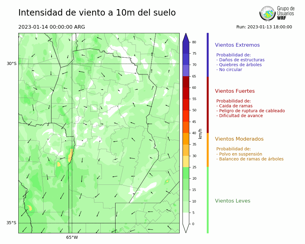 • Intensidad máxima: 15.40 km/h (14/01/2023 06hs.)