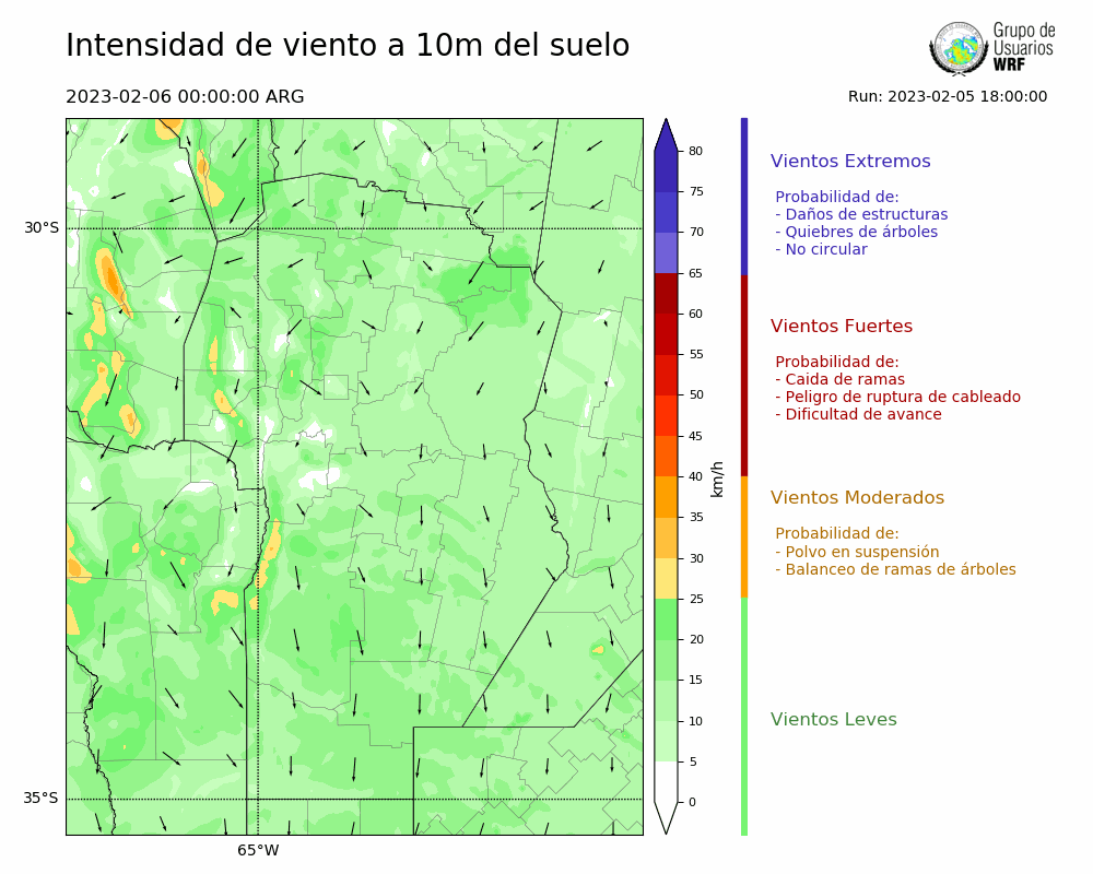 • Intensidad máxima: 30.20 km/h (06/02/2023 04hs.)