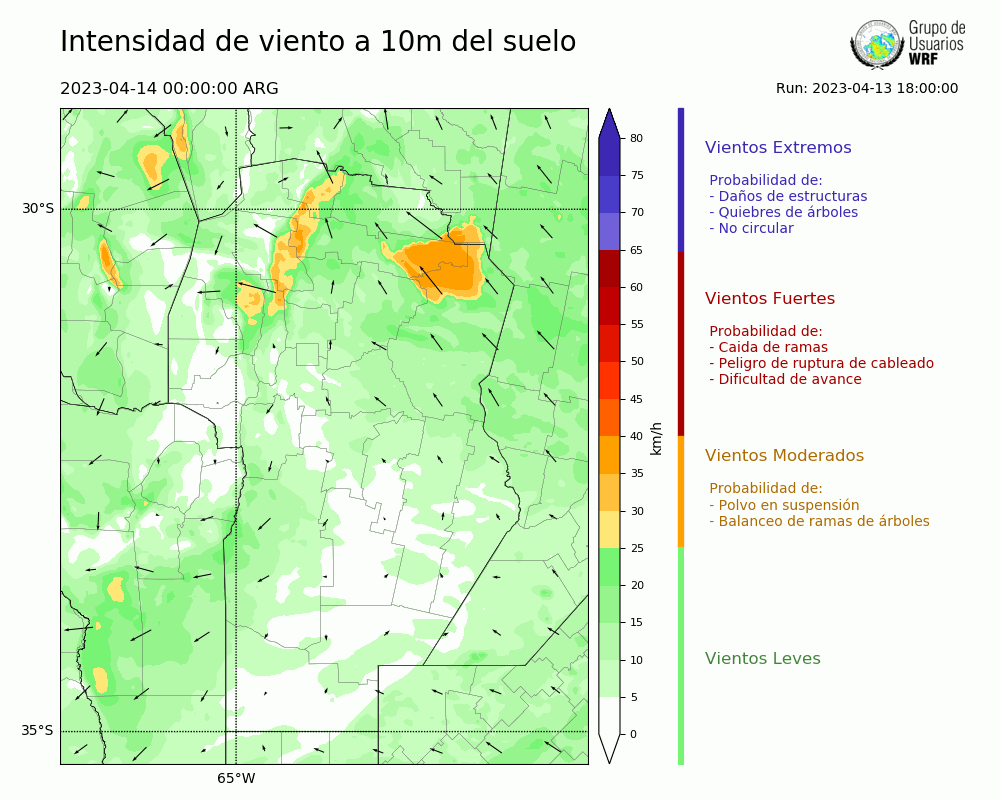 • Intensidad máxima: 4.95 km/h (14/04/2023 06hs.)