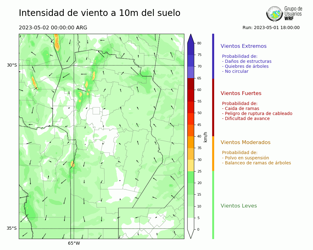 • Intensidad máxima: 4.34 km/h (02/05/2023 03hs.)