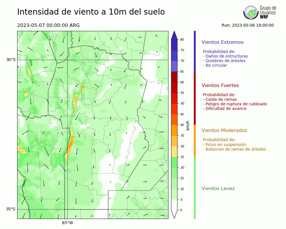 • Intensidad máxima: 40.84 km/h (07/05/2023 03hs.)