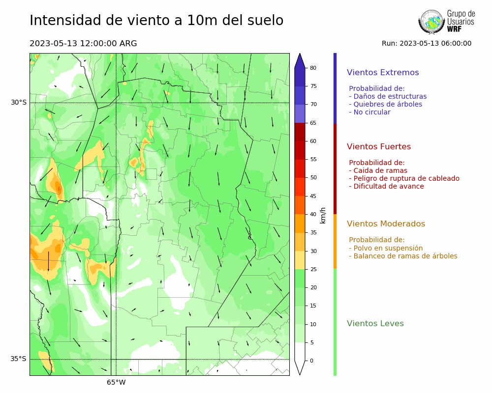• Intensidad máxima: 7.68 km/h (15/05/2023 02hs.)