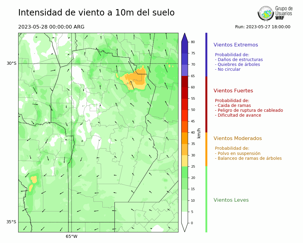• Intensidad máxima: 10.45 km/h (28/05/2023 11hs.)