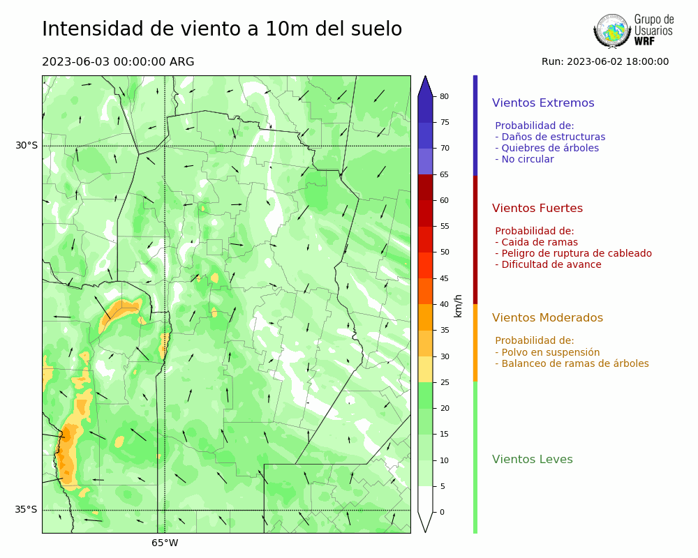 • Intensidad máxima: 6.65 km/h (03/06/2023 22hs.)
