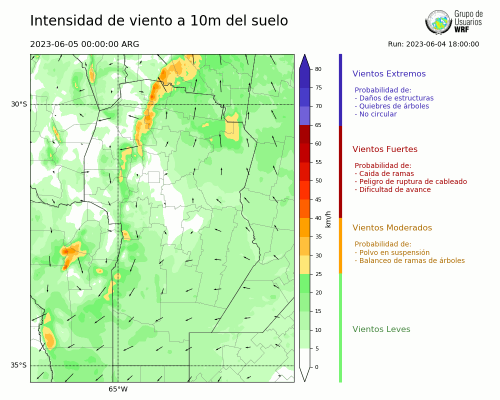 • Intensidad máxima: 9.04 km/h (05/06/2023 07hs.)