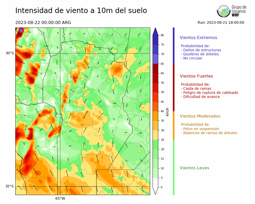 • Intensidad máxima: 26.60 km/h (22/08/2023 05hs.)