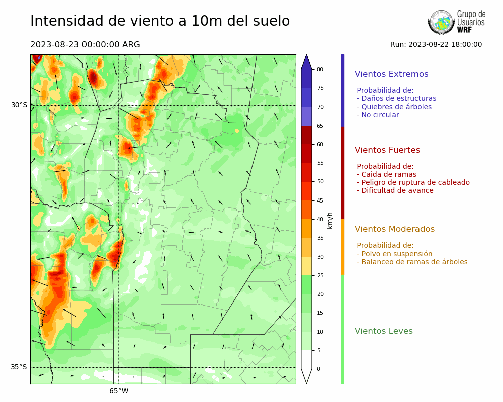 • Intensidad máxima: 9.46 km/h (23/08/2023 07hs.)