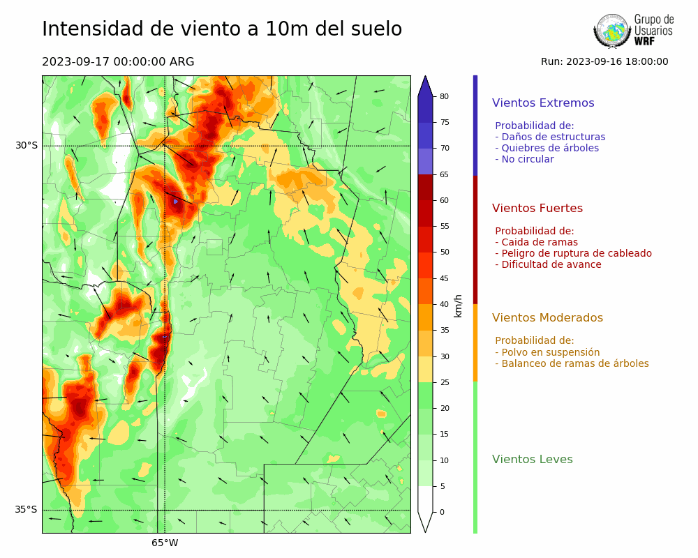 • Intensidad máxima: 15.68 km/h (17/09/2023 03hs.)