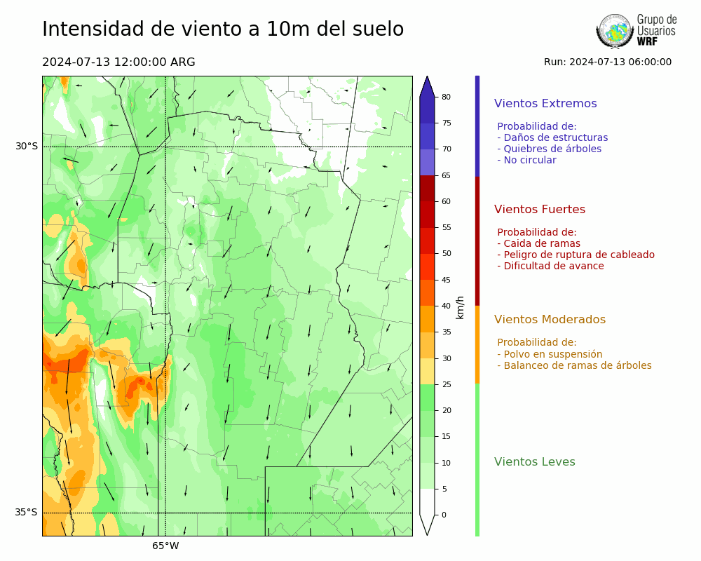 • Intensidad máxima: 13.36 km/h (14/07/2024 21hs.)