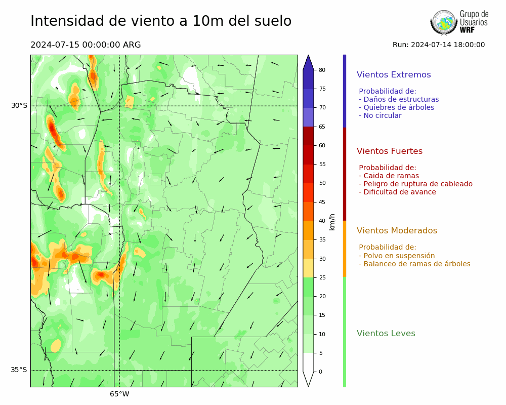 • Intensidad máxima: 16.00 km/h (16/07/2024 15hs.)
