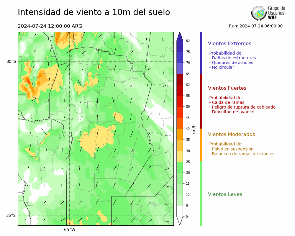 • Intensidad máxima: 15.72 km/h (25/07/2024 04hs.)