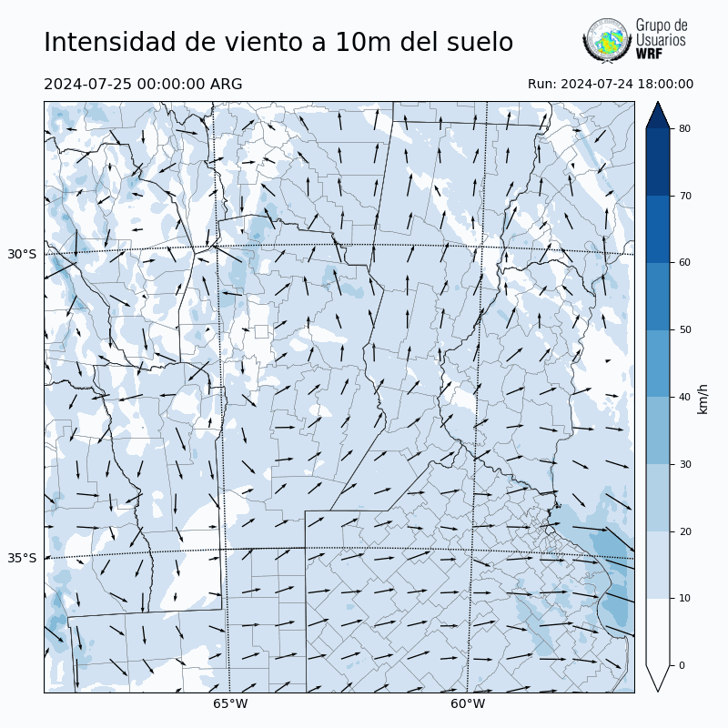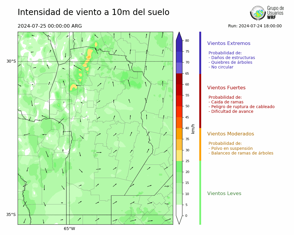 • Intensidad máxima: 16.27 km/h (25/07/2024 05hs.)