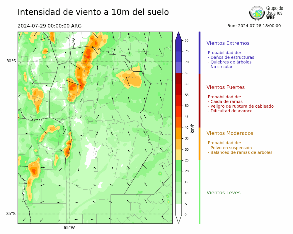 • Intensidad máxima: 20.24 km/h (29/07/2024 11hs.)