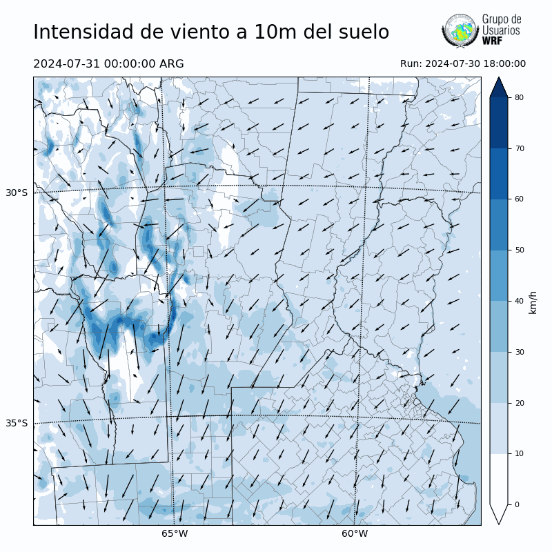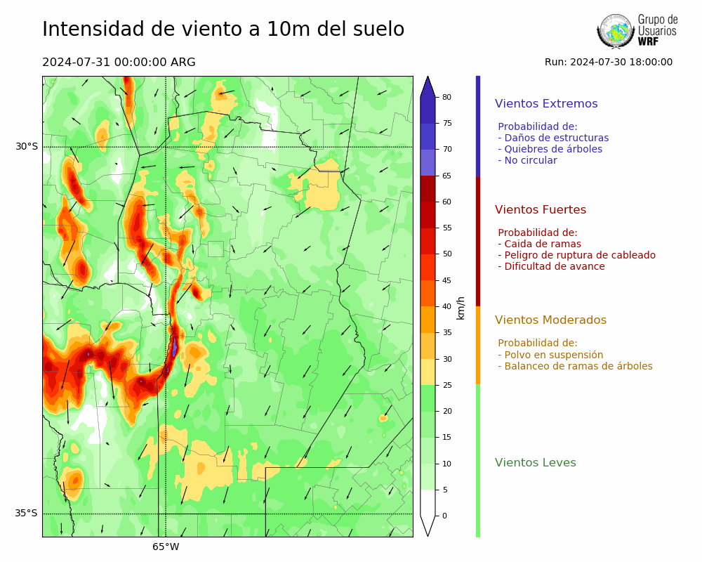 • Intensidad máxima: 20.20 km/h (31/07/2024 06hs.)