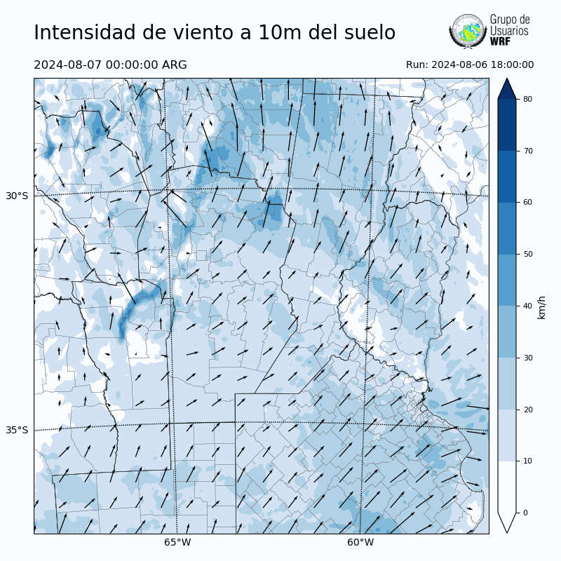 • Intensidad máxima: 11.80 km/h (08/08/2024 13hs.)