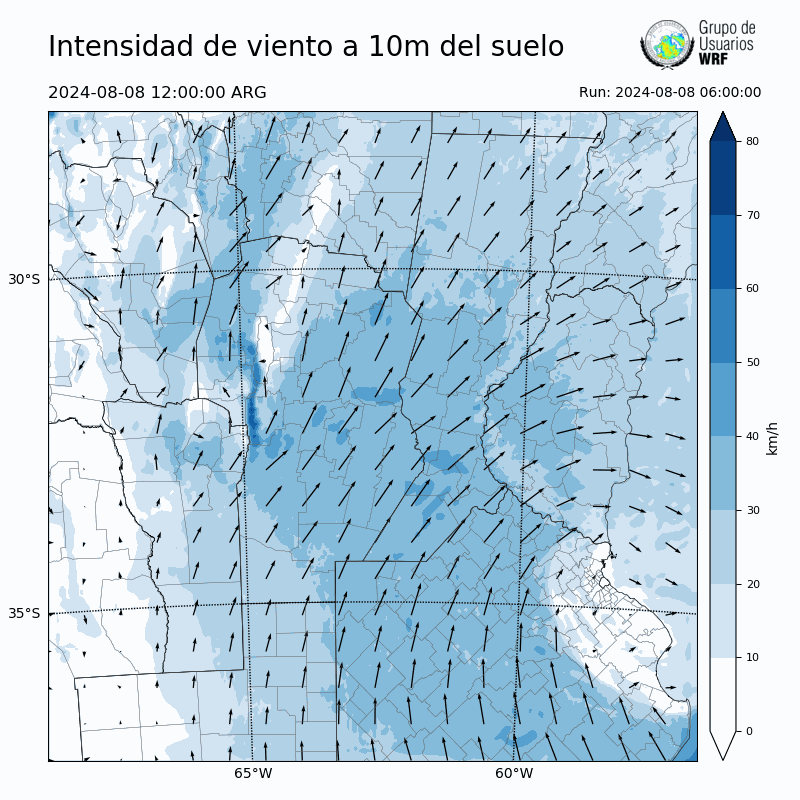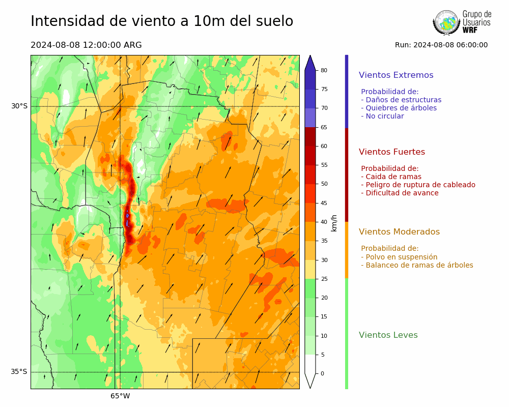 • Intensidad máxima: 16.50 km/h (08/08/2024 17hs.)