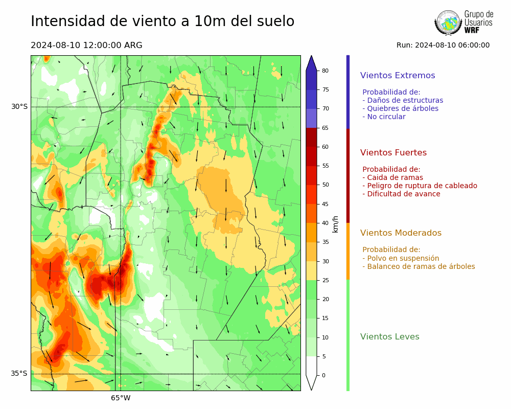 • Intensidad máxima: 17.18 km/h (12/08/2024 20hs.)