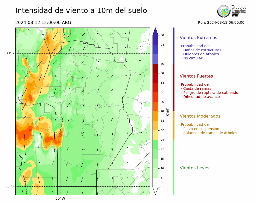 • Intensidad máxima: 19.85 km/h (12/08/2024 18hs.)