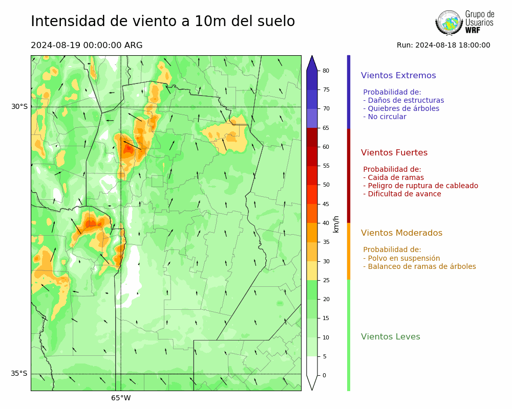 • Intensidad máxima: 18.71 km/h (19/08/2024 00hs.)