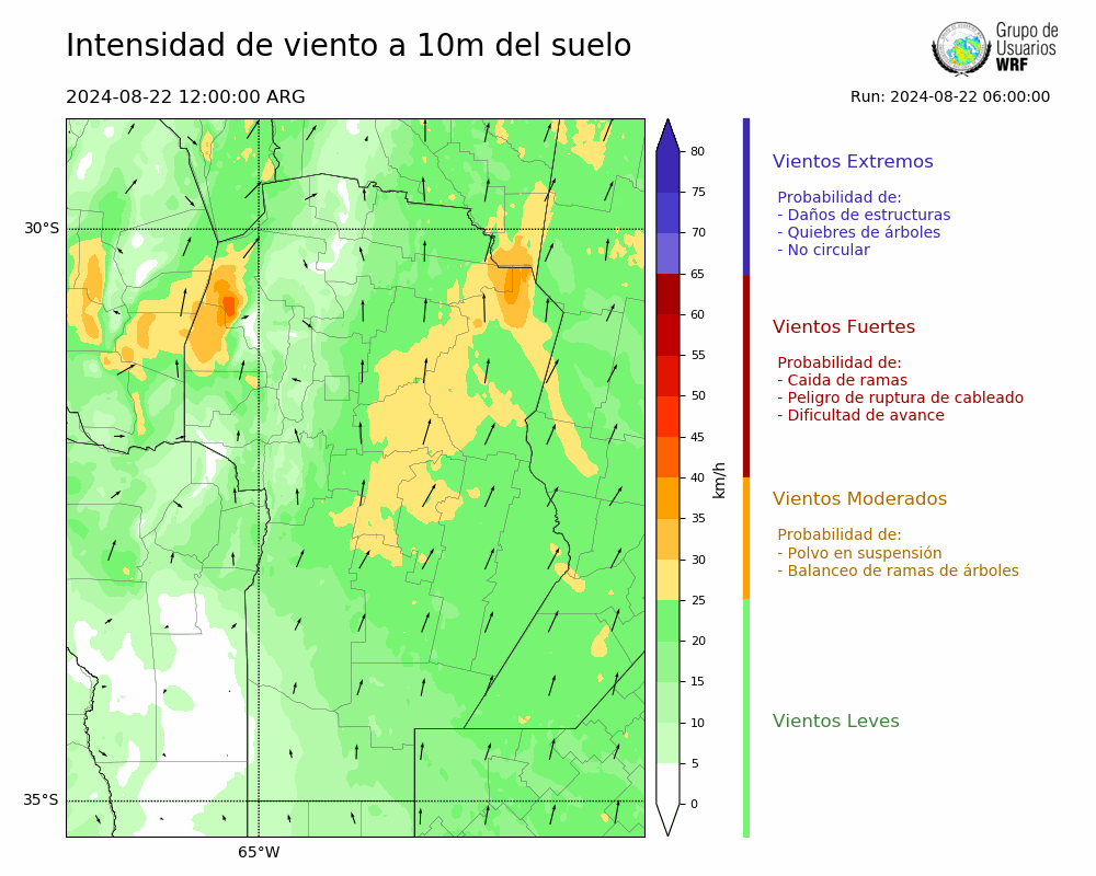 • Intensidad máxima: 13.84 km/h (23/08/2024 18hs.)