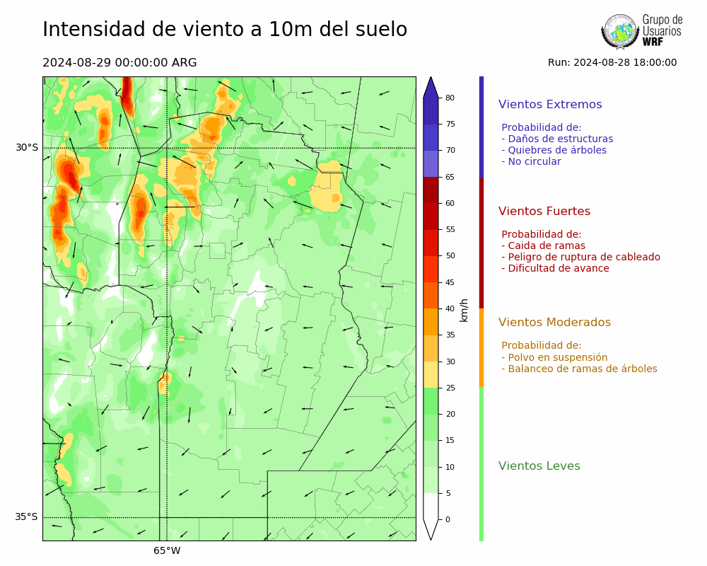 • Intensidad máxima: 10.21 km/h (29/08/2024 11hs.)