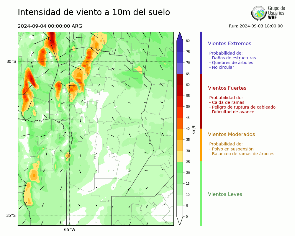 • Intensidad máxima: 12.38 km/h (04/09/2024 11hs.)