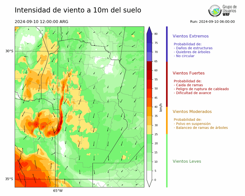 • Intensidad máxima: 20.50 km/h (10/09/2024 13hs.)