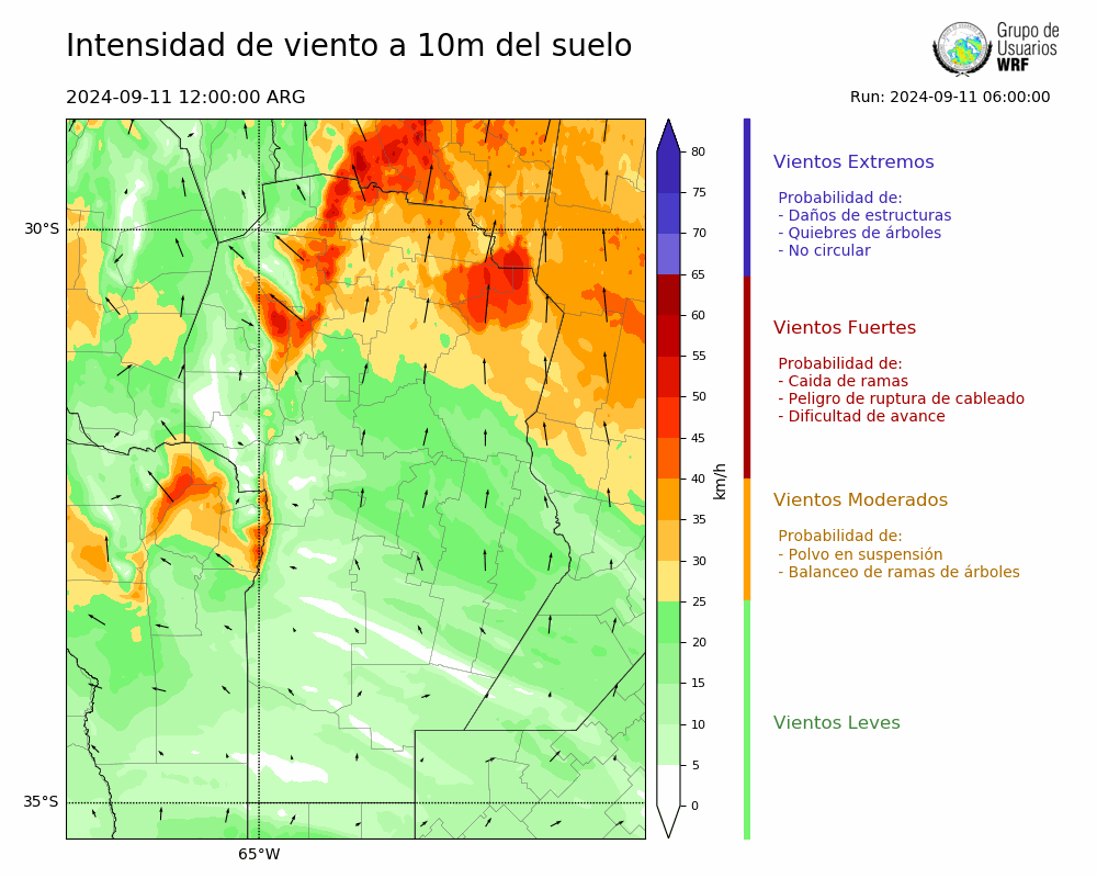 • Intensidad máxima: 13.83 km/h (12/09/2024 22hs.)
