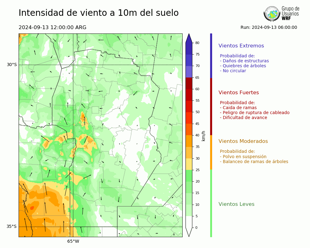 • Intensidad máxima: 28.04 km/h (13/09/2024 16hs.)