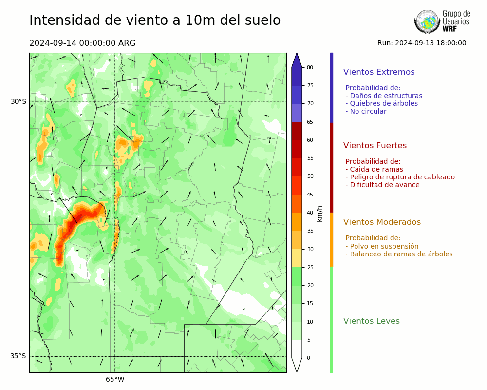 • Intensidad máxima: 17.67 km/h (14/09/2024 00hs.)