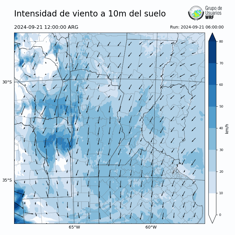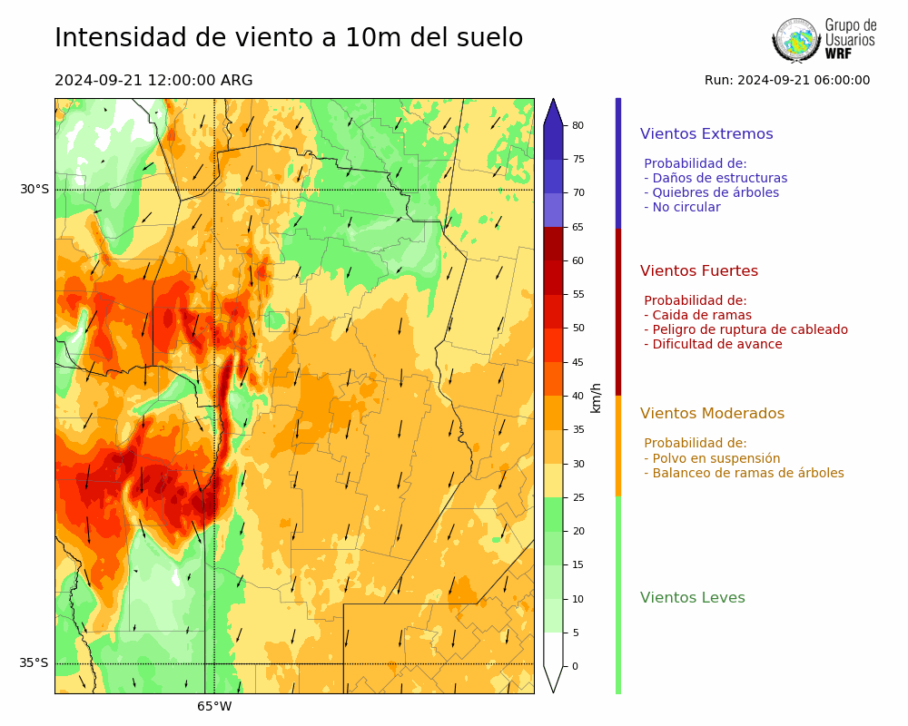 • Intensidad máxima: 32.64 km/h (21/09/2024 17hs.)
