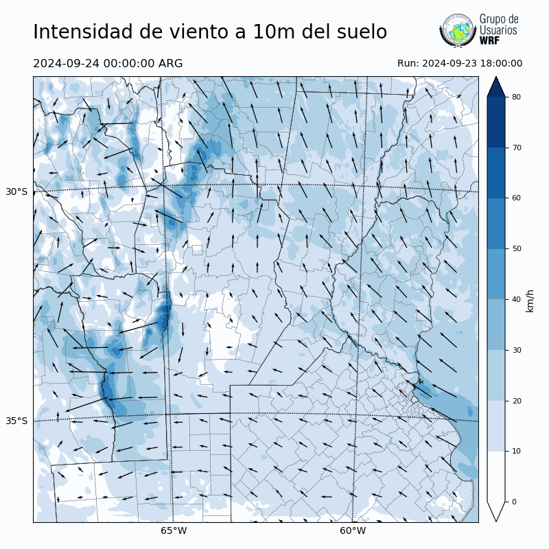 • Intensidad máxima: 22.46 km/h (24/09/2024 08hs.)
