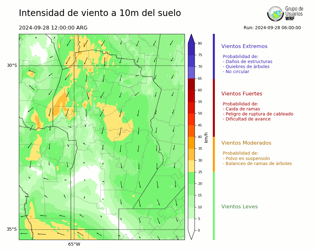 • Intensidad máxima: 25.97 km/h (28/09/2024 23hs.)
