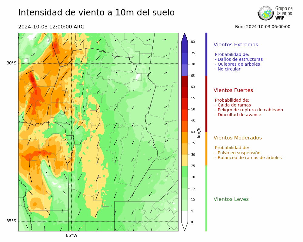 • Intensidad máxima: 20.71 km/h (03/10/2024 12hs.)