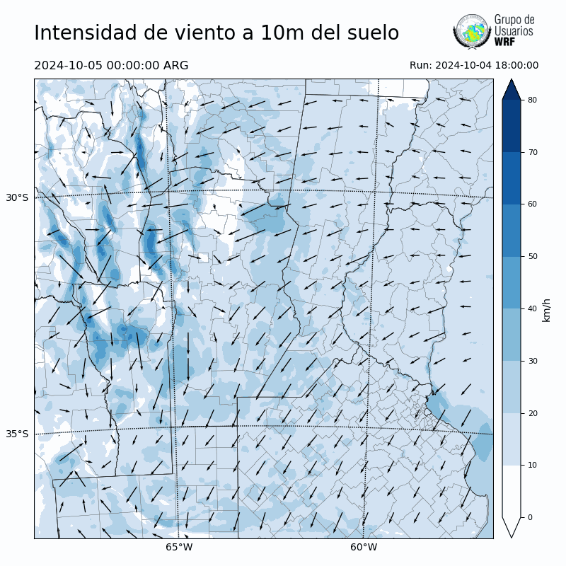 • Intensidad máxima: 27.51 km/h (05/10/2024 03hs.)