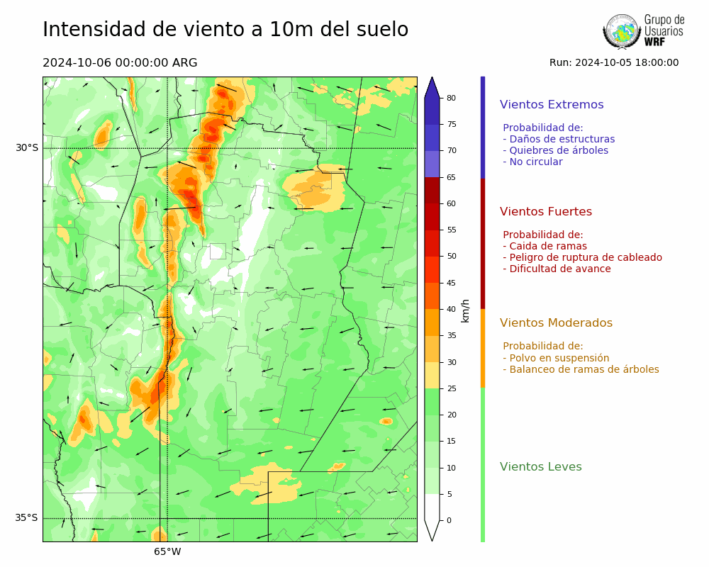 • Intensidad máxima: 20.06 km/h (06/10/2024 00hs.)