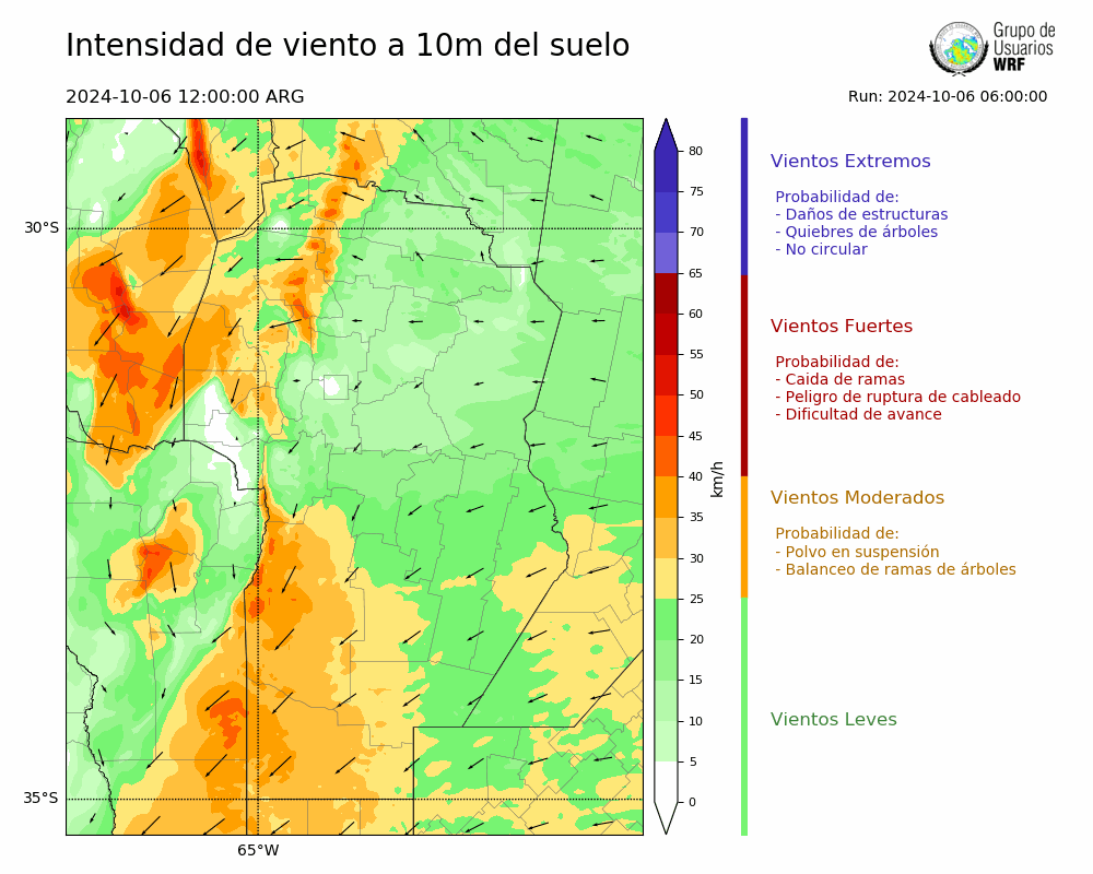 • Intensidad máxima: 24.80 km/h (06/10/2024 16hs.)