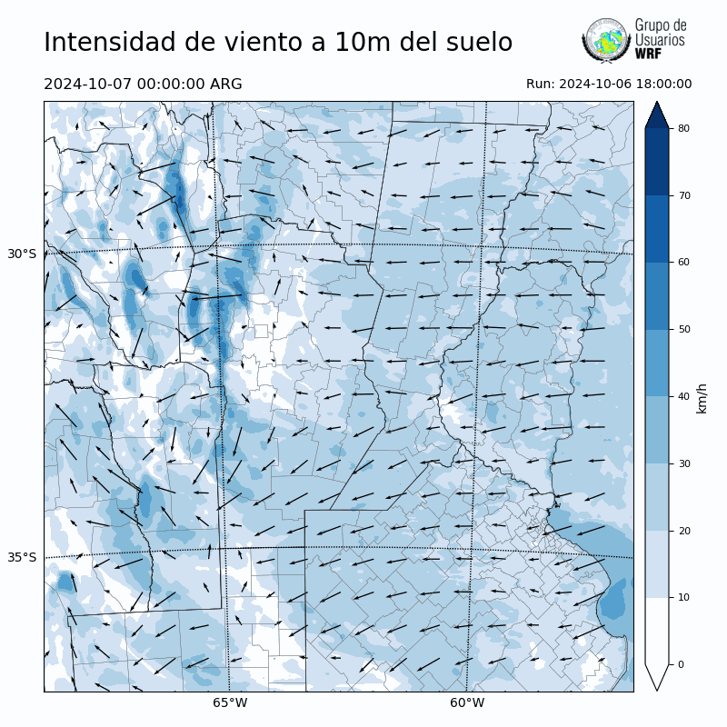 • Intensidad máxima: 6.11 km/h (07/10/2024 06hs.)