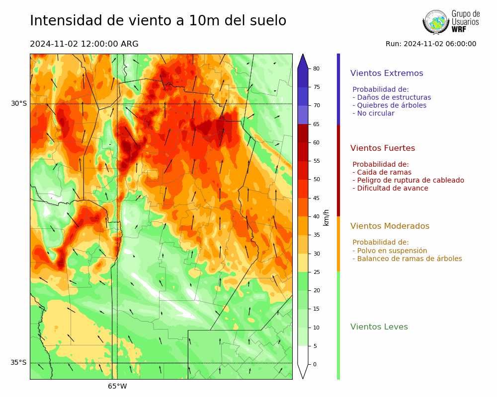 • Intensidad máxima: 9.35 km/h (04/11/2024 01hs.)