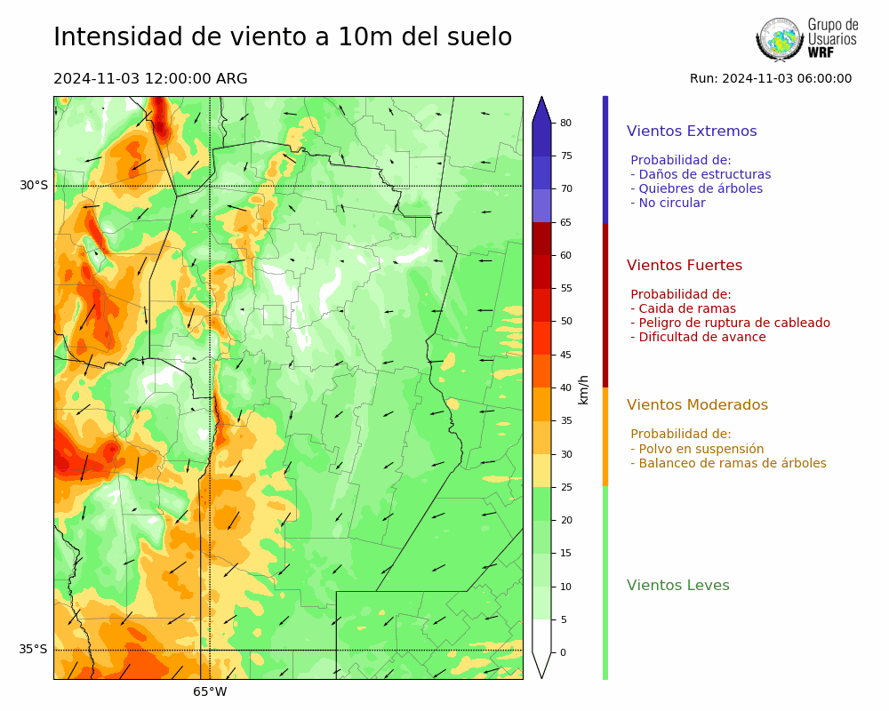 • Intensidad máxima: 10.32 km/h (03/11/2024 16hs.)