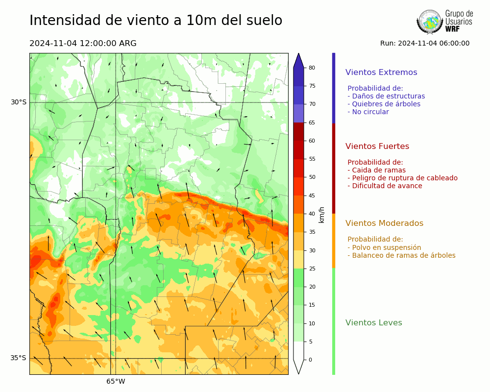• Intensidad máxima: 12.19 km/h (06/11/2024 07hs.)