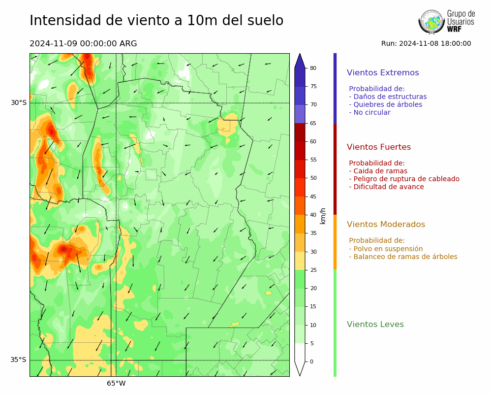 • Intensidad máxima: 30.59 km/h (09/11/2024 08hs.)